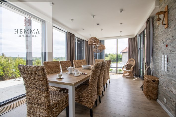 - Otwarta jadalnia: Duży stół z miejscem dla dziesięciu osób