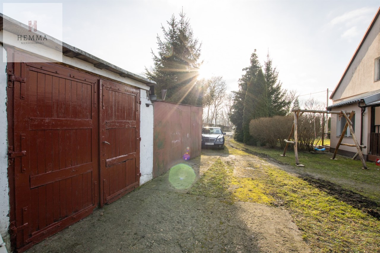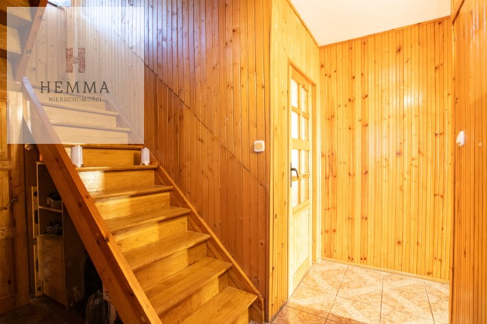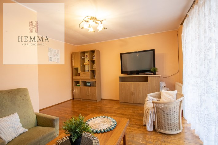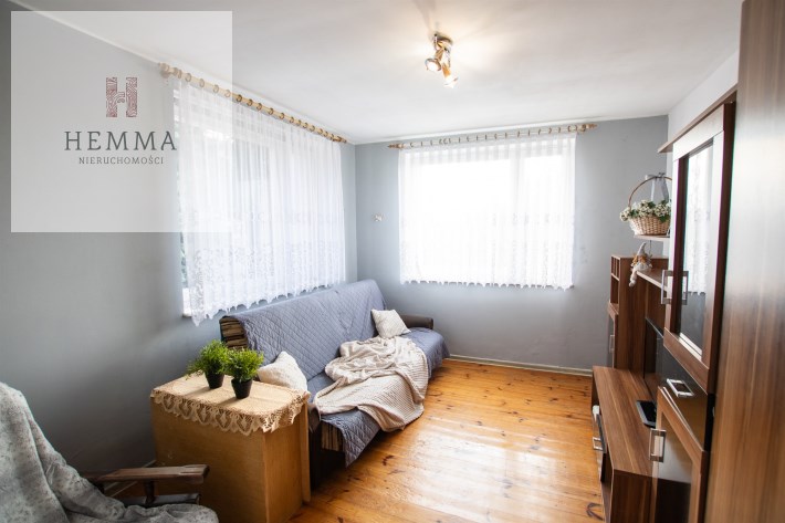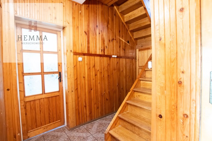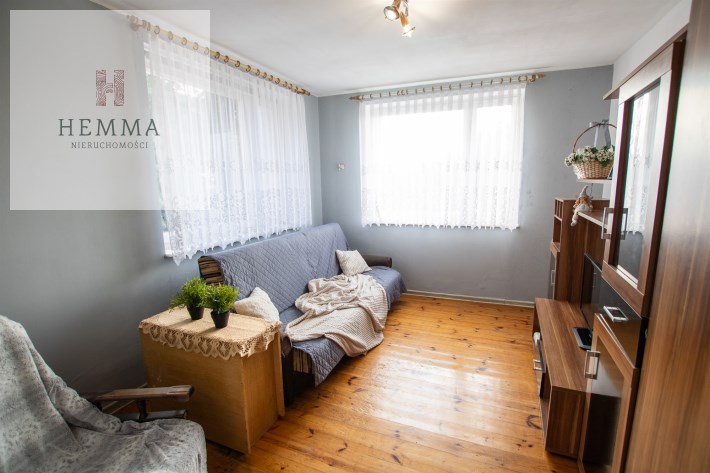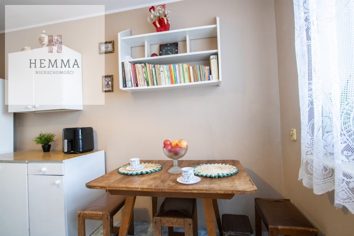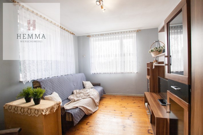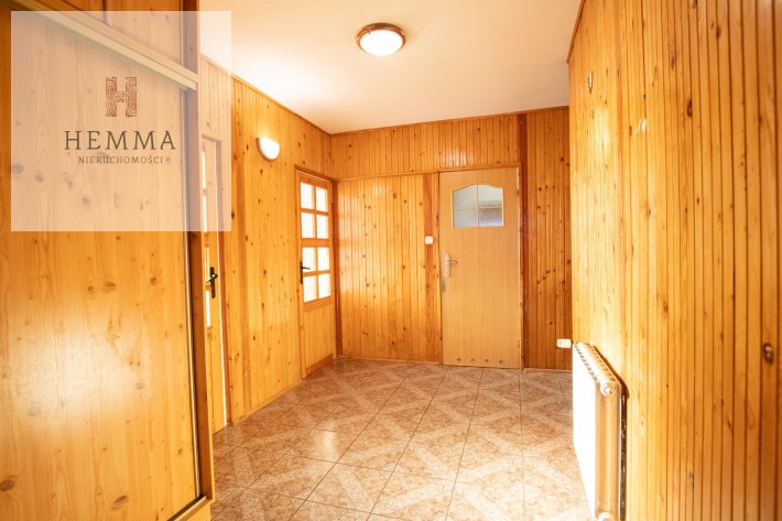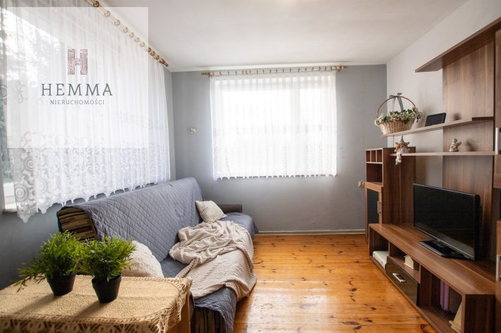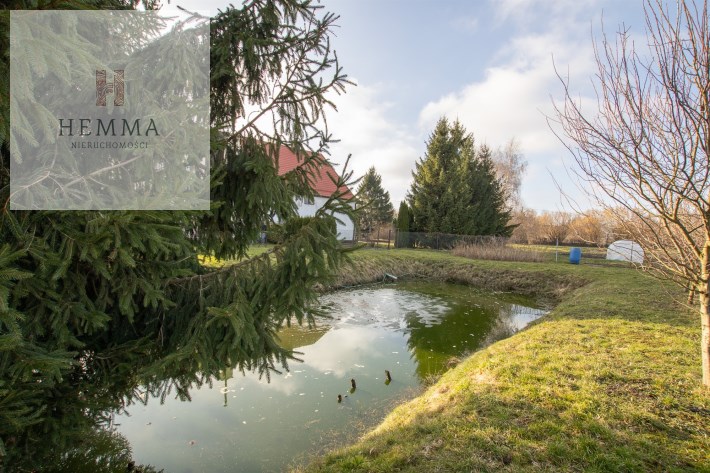 Dom składa się z dwóch sypialni, łazienki z WC, naprawdę obszernej kuchni oraz dużego salonu z którego wyjście na taras jest niezwykle wygodnym rozwiązaniem. Duży strych jest potencjałem do rozbudowy i wygenerowania dodatkowej powierzchni mieszkalnej a osobna kotłownia korzystnie wpływa na zachowanie czystości w części mieszkalnej. Na działce znajduje się garaż, kilka nasadzeń oraz własny staw który daje wiele możliwości dla nowego właściciela. Dom wybudowany w latach pięćdziesiątych jest w dobrym stanie technicznym i nie nastręczy żadnych problemów nowemu właścicielowi.