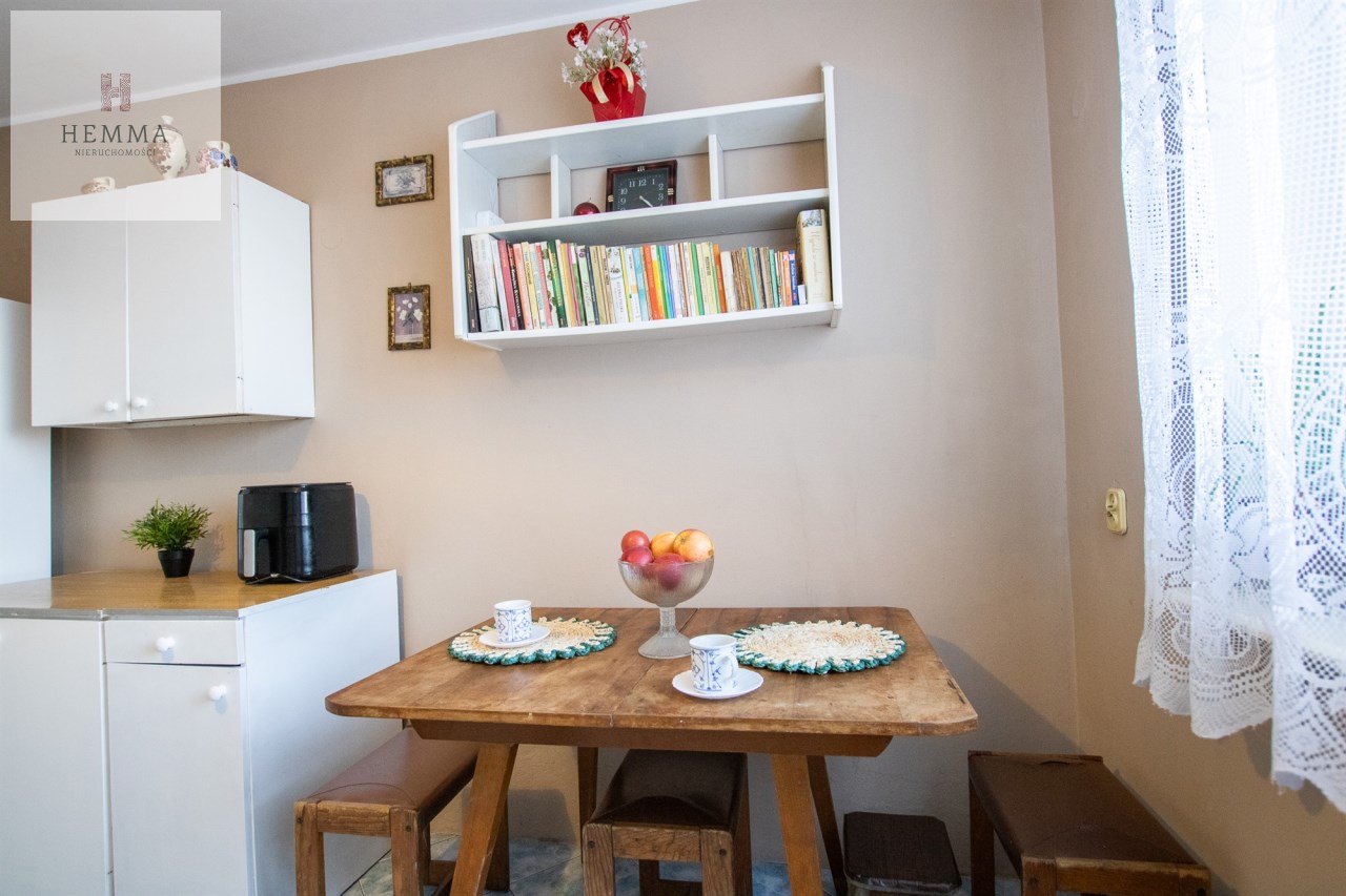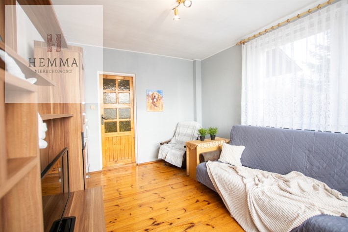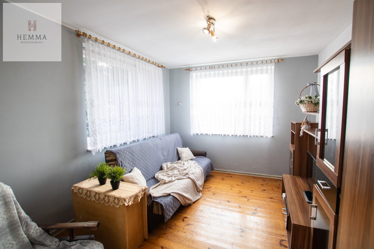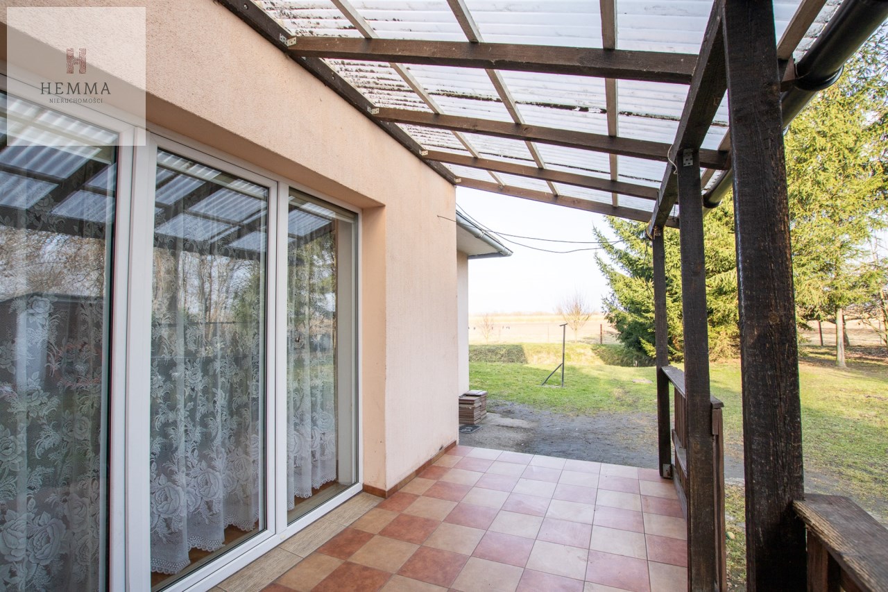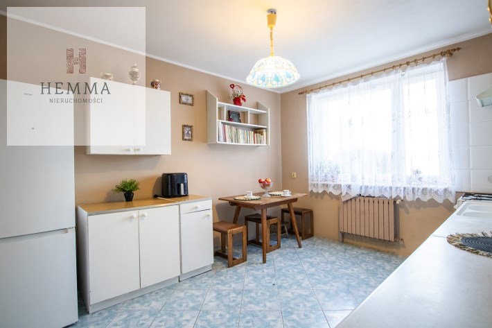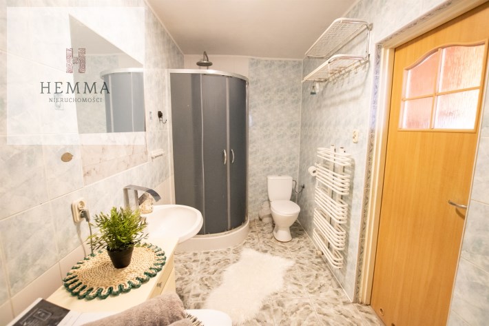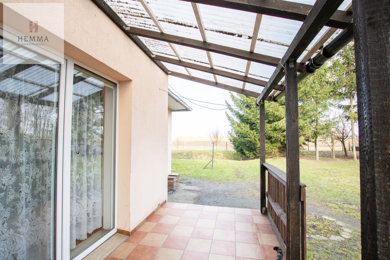 Dom składa się z dwóch sypialni, łazienki z WC, naprawdę obszernej kuchni oraz dużego salonu z którego wyjście na taras jest niezwykle wygodnym rozwiązaniem. Duży strych jest potencjałem do rozbudowy i wygenerowania dodatkowej powierzchni mieszkalnej a osobna kotłownia korzystnie wpływa na zachowanie czystości w części mieszkalnej. Na działce znajduje się garaż, kilka nasadzeń oraz własny staw który daje wiele możliwości dla nowego właściciela. Dom wybudowany w latach pięćdziesiątych jest w dobrym stanie technicznym i nie nastręczy żadnych problemów nowemu właścicielowi.