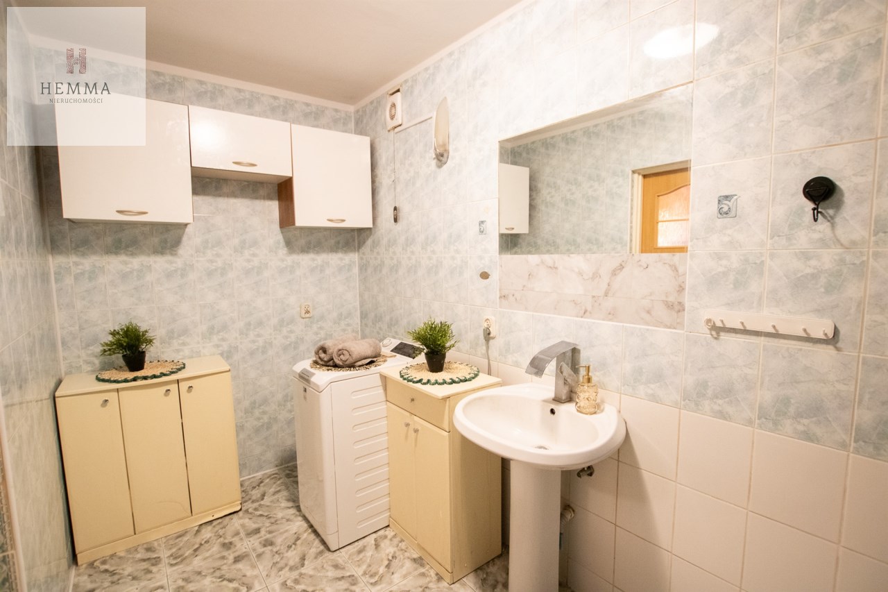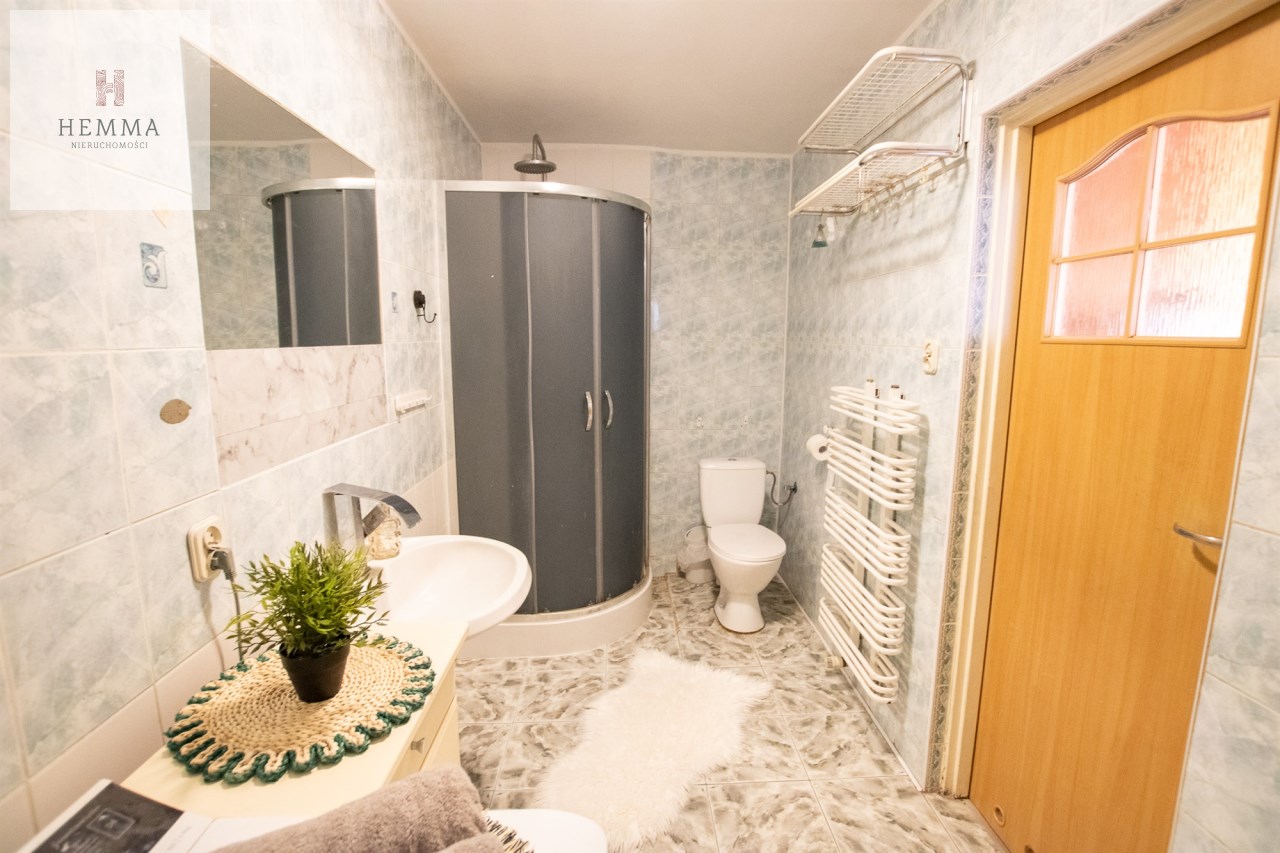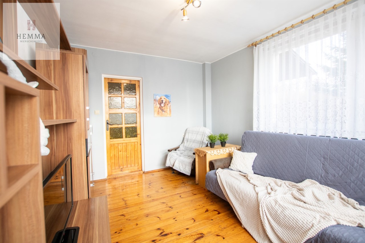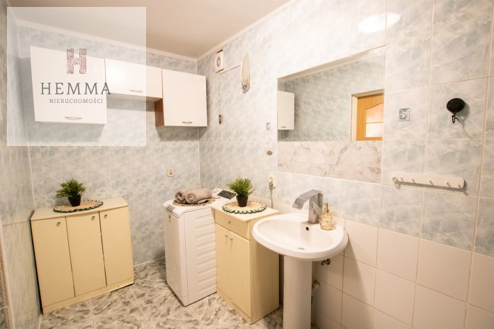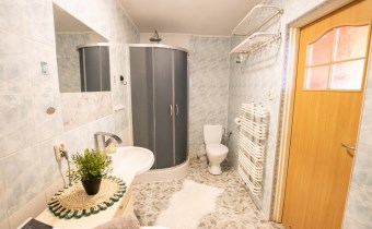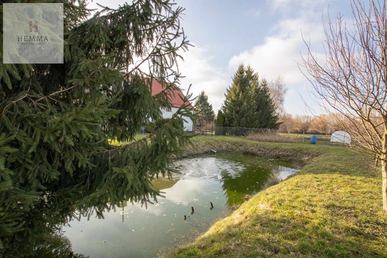 Dom składa się z dwóch sypialni, łazienki z WC, naprawdę obszernej kuchni oraz dużego salonu z którego wyjście na taras jest niezwykle wygodnym rozwiązaniem. Duży strych jest potencjałem do rozbudowy i wygenerowania dodatkowej powierzchni mieszkalnej a osobna kotłownia korzystnie wpływa na zachowanie czystości w części mieszkalnej. Na działce znajduje się garaż, kilka nasadzeń oraz własny staw który daje wiele możliwości dla nowego właściciela. Dom wybudowany w latach pięćdziesiątych jest w dobrym stanie technicznym i nie nastręczy żadnych problemów nowemu właścicielowi.