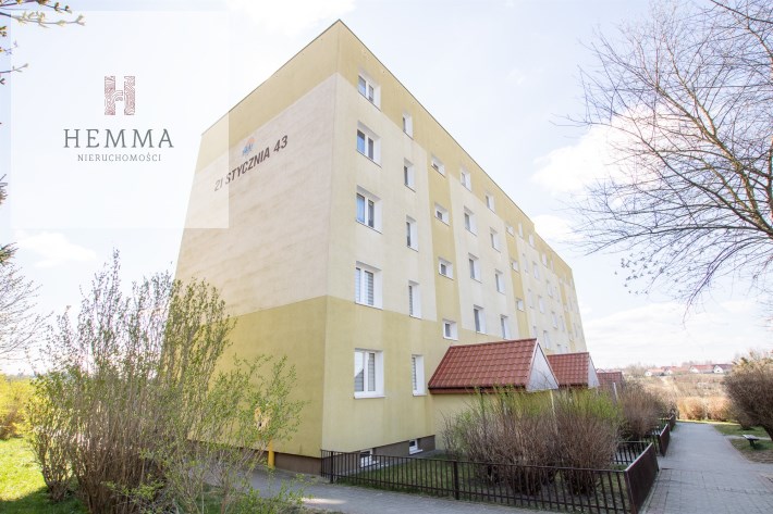 Mieszkanie znajduje się przy ulicy 21 Stycznia w Ostródzie, w południowej części miasta, na terenie osiedla o dominującym charakterze mieszkaniowym. To typowa strefa mieszkalna z dużą ilością zieleni, cicha, idealna dla rodzin lub singli. Choć sama ulica 21 Stycznia jest istotnym ciągiem komunikacyjnym, budynek w którym znajduję się nieruchomość, znajduje się w oddaleniu od głównego pasma ruchu, co ogranicza uciążliwość dźwiękową. W pobliżu znajduje się także przystanek autobusowy Nad Jarem Pętla, kompleks sportowy Orlik, Szkoła Podstawowa Nr 1 im. Armi Krajowej, piekarnia Tyrolska, sklep spożywczy, weterynarz.