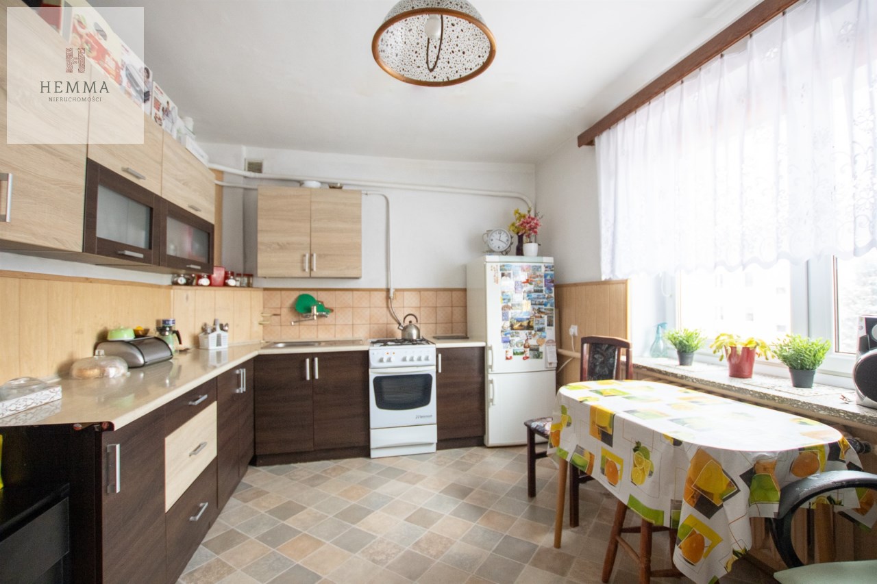 -Kuchnia: zabudowa meblowa, stół, lodówka, kuchenka gazowa.