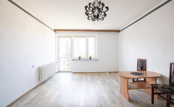 -Pokój z wyjściem na balkon; ława i trzy krzesła.