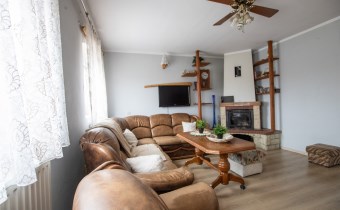 - Salon: Kanapa narożna, fotel, komoda, stolik kawowy