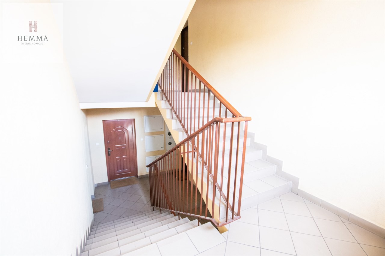 Teren wokół budynku jest czysty, zadbany jak również klatka schodowa, która jest jasna i szeroka. Pod blokiem znajduje się parking dla mieszkańców budynku.