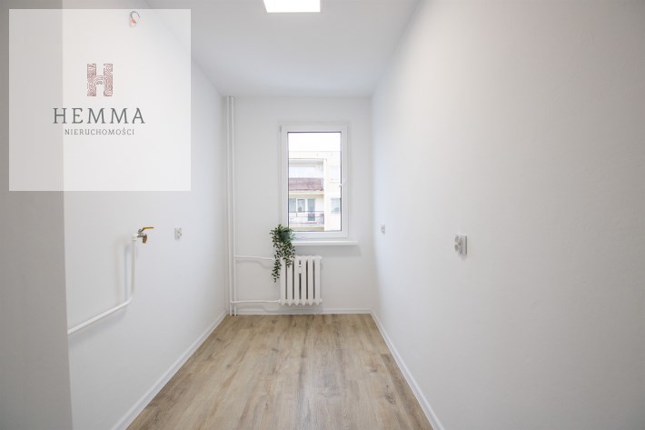 Całe mieszkanie, wraz z balkonem, jest wyremontowane, odświeżone, pomalowane białą farbą. Neutralna kolorystyka oraz układ pomieszczeń sprawiają, że mieszkanie jest łatwe do aranżacji i pozwala na szybkie dostosowanie wnętrza do własnych potrzeb.