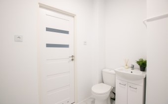 -Łazienka: zlew z szafką, WC i miejsce na pralkę, prysznic czy wannę oraz meble łazienkowe