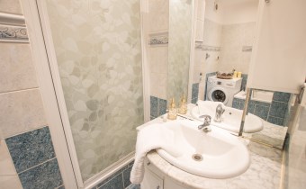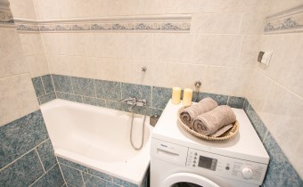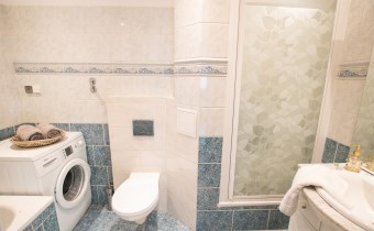 -Łazienka: wanna, WC, prysznic, zlew z szafką, lustro,