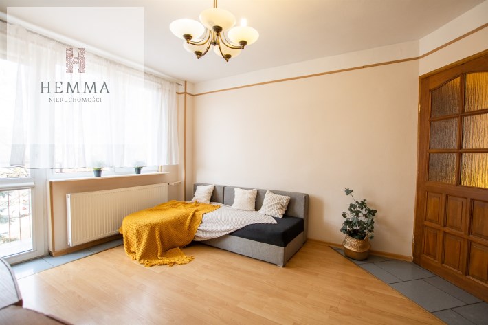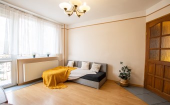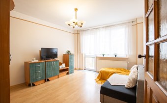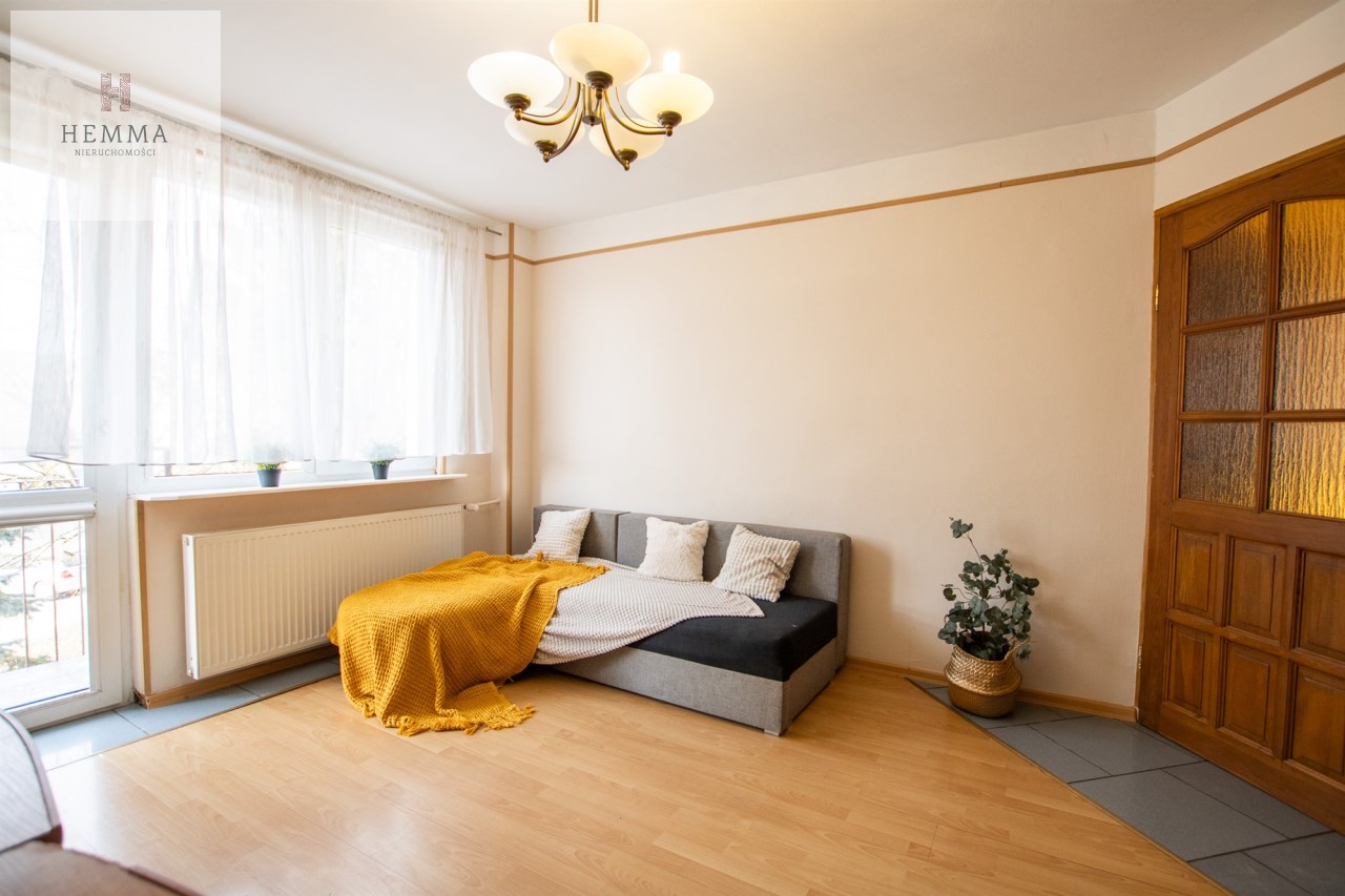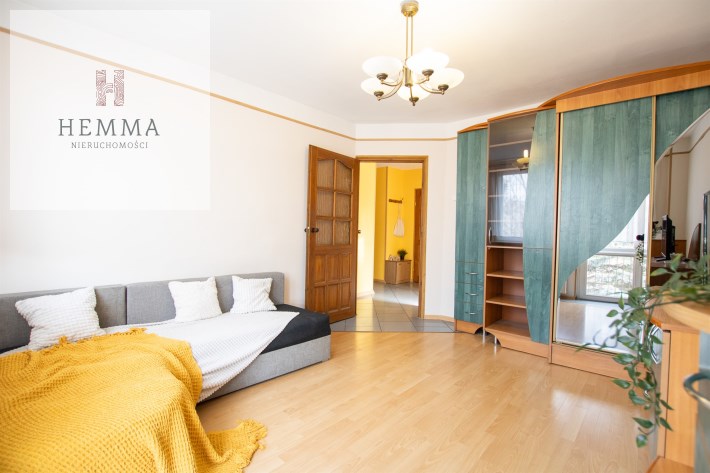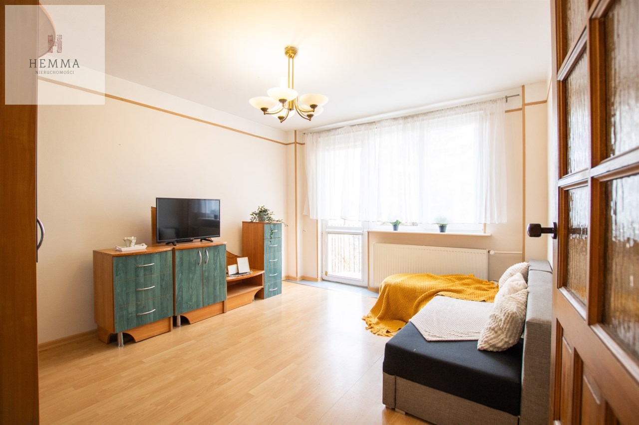 -Pokój 1: duży pokój z wyjściem na balkon; duża szafa, kanapa, zestaw mebli RTV