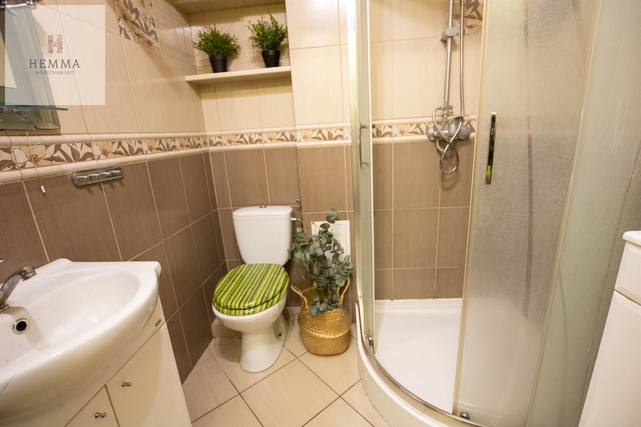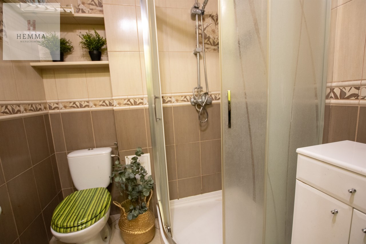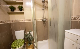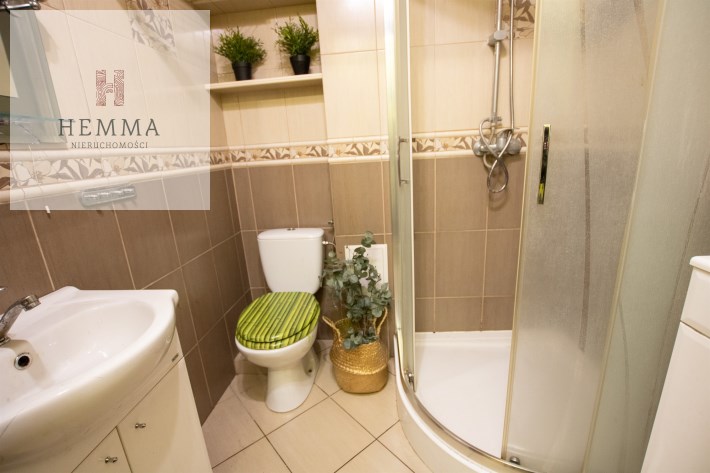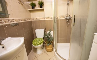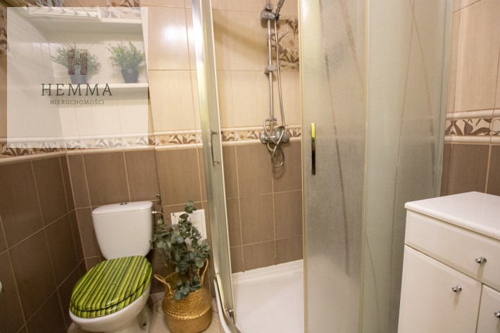 - Łazienka: Kabina prysznicowa, wc, umywalka z miejscem do przechowywania
