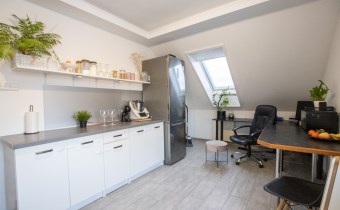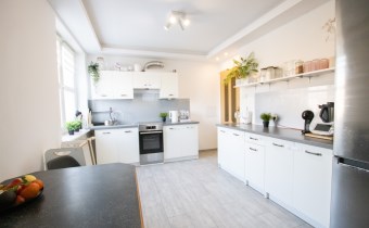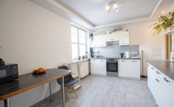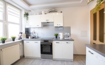 - Kuchnia: przestronna kuchnia, z zabudową meblową oraz częścią jadalnianą,