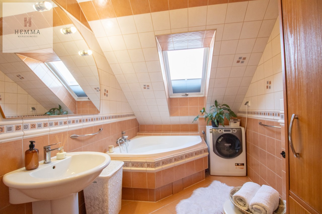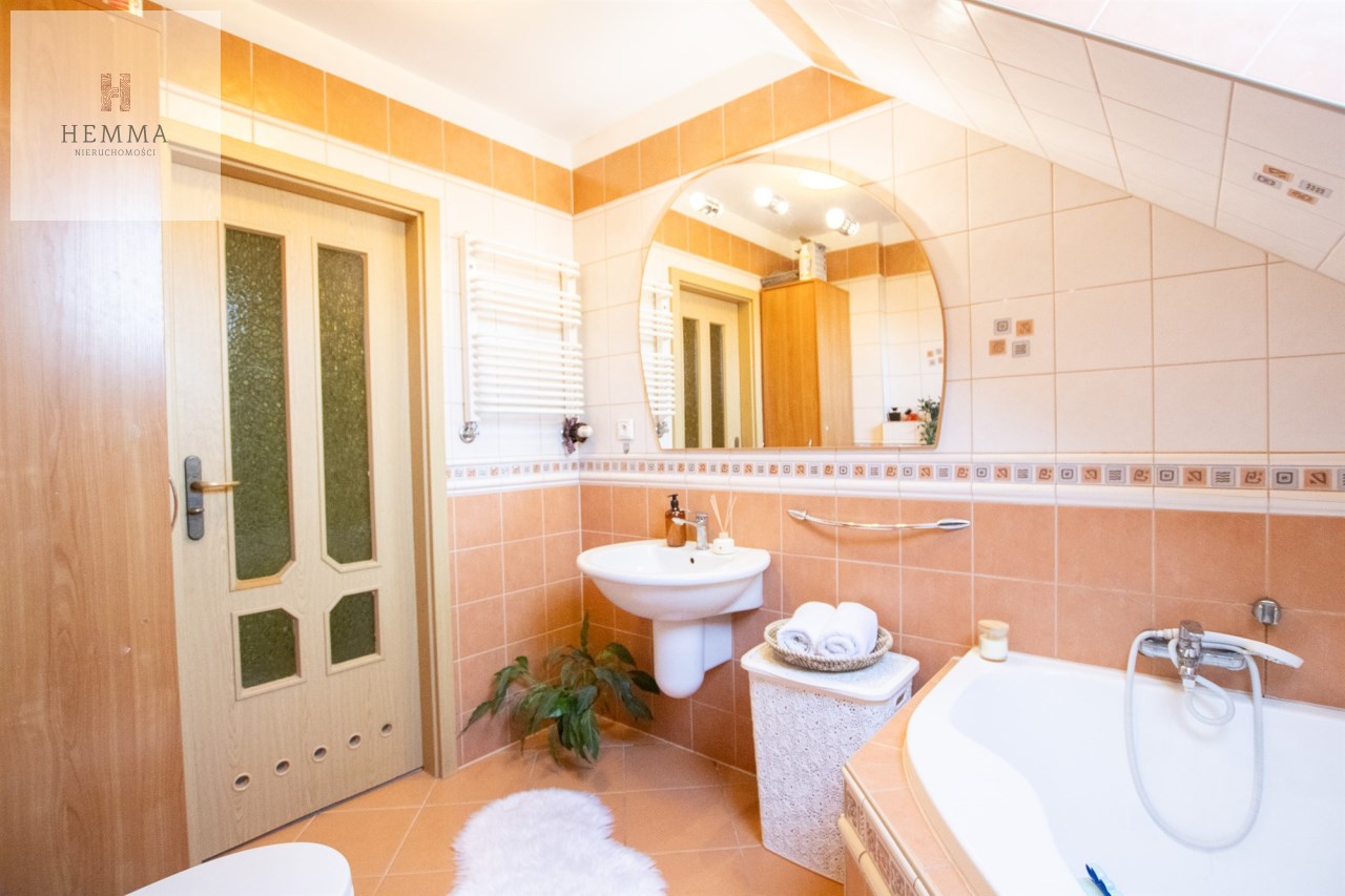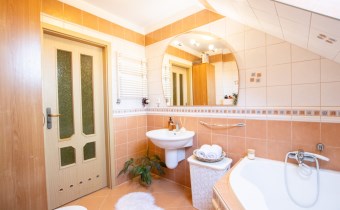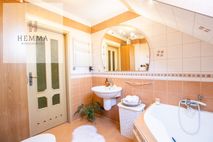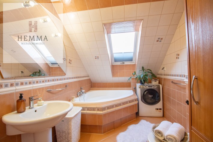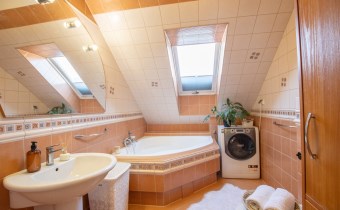 - Łazienka : duża narożna wanna, toaleta, zlew,