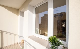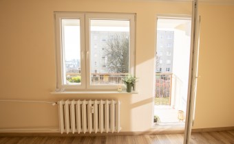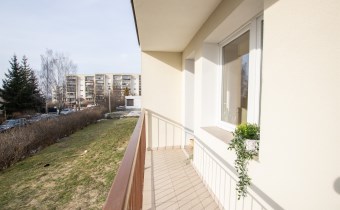 -Balkon- duży przestronny z widokiem na ogródki działkowe.