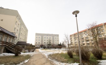 Z okna mieszkania, z dużego pokoju, można zobaczyć tereny zielone, ponieważ w bliskiej odległości znajduje się kompleks ogrodów działkowych.