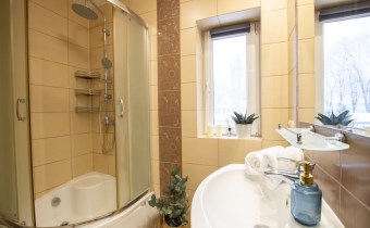 -Łazienka: prysznic, szafka ze zlewem