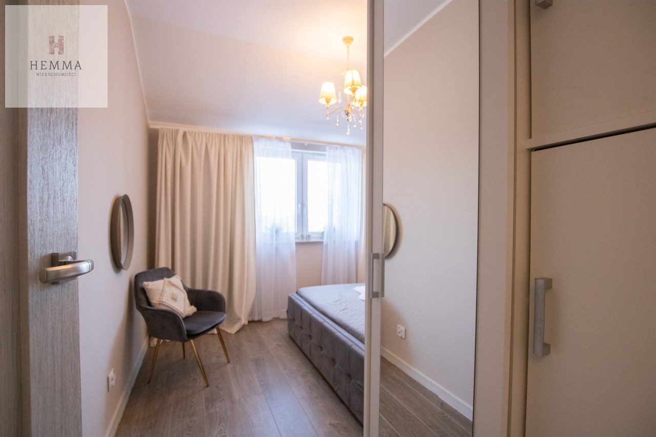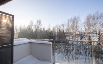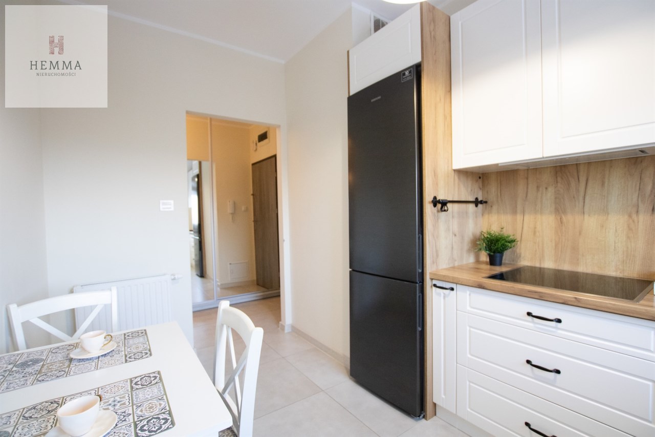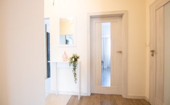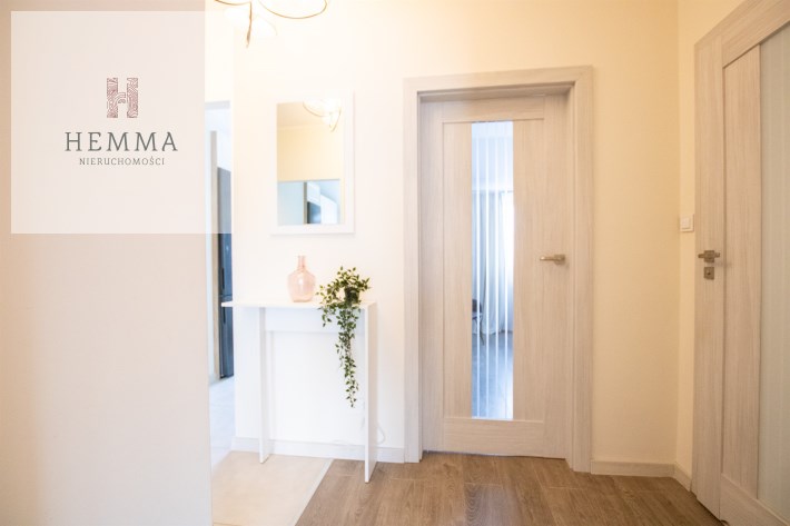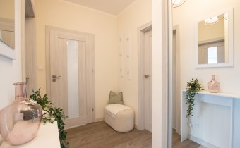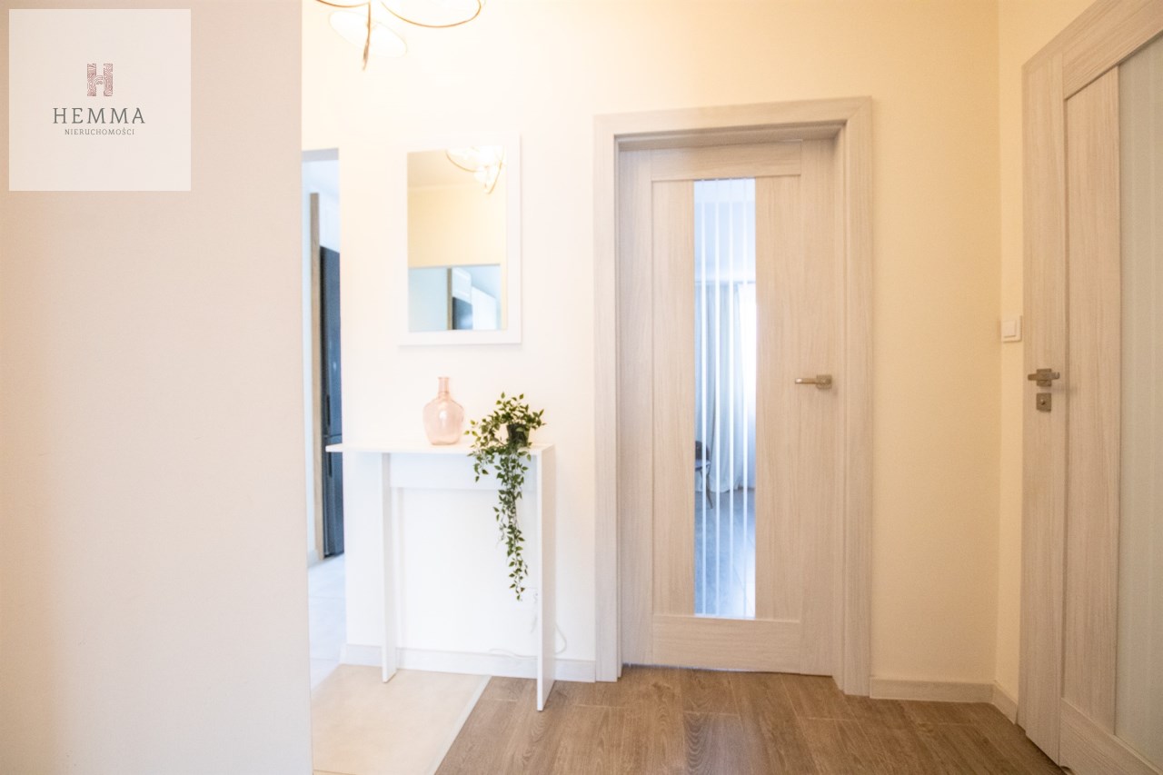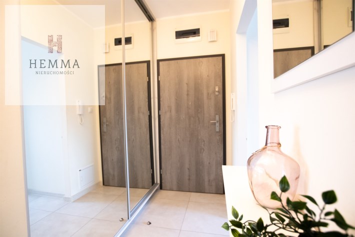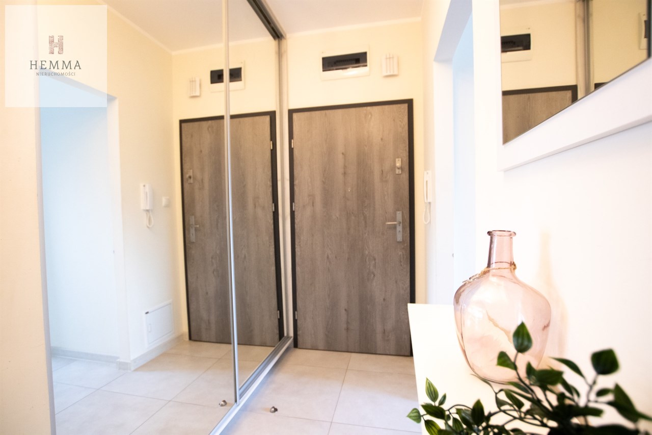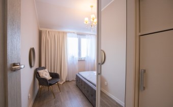 Mieszkanie o powierzchni 54,47 m2 , składające się z przestronnego salonu z wyjściem na balkon, z którego rozciąga się przyjemny widok na zieleń, oddzielnej kuchni, sypialni, łazienki oraz przedpokoju. Kuchnia w pełnej zabudowie z wyposażeniem, z której okna można podziwiać widok na jezioro. Łazienka jest przestronna i nowoczesna – znajduje się w niej duży prysznic z odpływem liniowym oraz miejsce na pralkę.