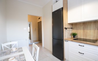 -Kuchnia: meble pod zabudowę, piekarnik, mikrofalówka, płyta indukcyjna, zmywarka, pochłaniacz, stół z krzesłami
