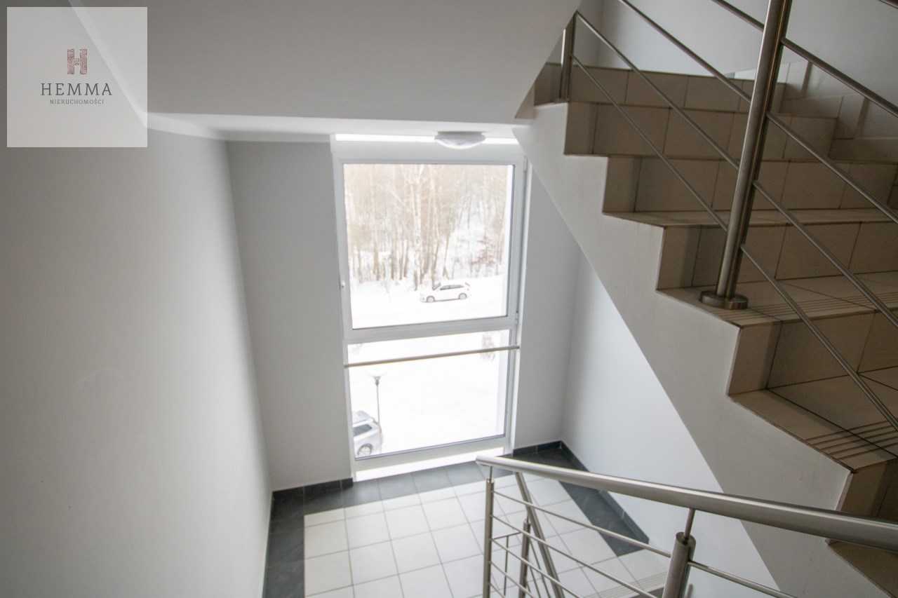 Nieruchomość znajduje się w Kajkowie przy ulicy Widok, w trzypiętrowym bloku z windą, usytuowanym bezpośrednio nad jeziorem Sajmino.