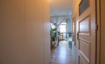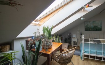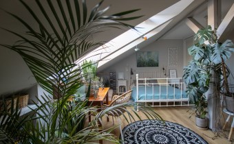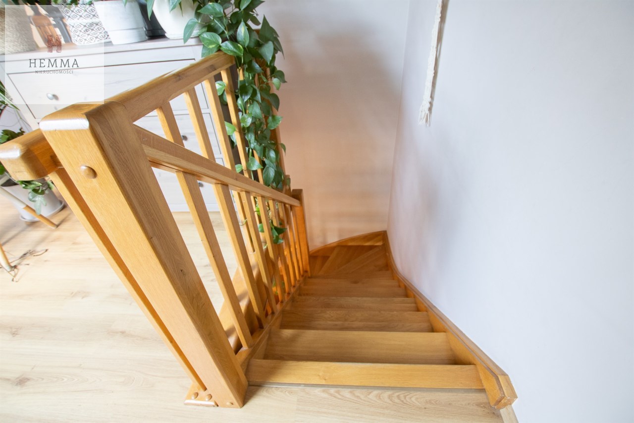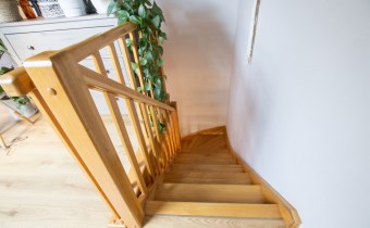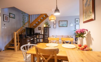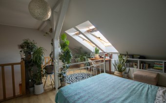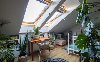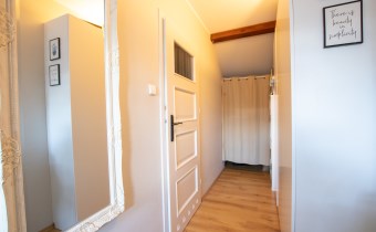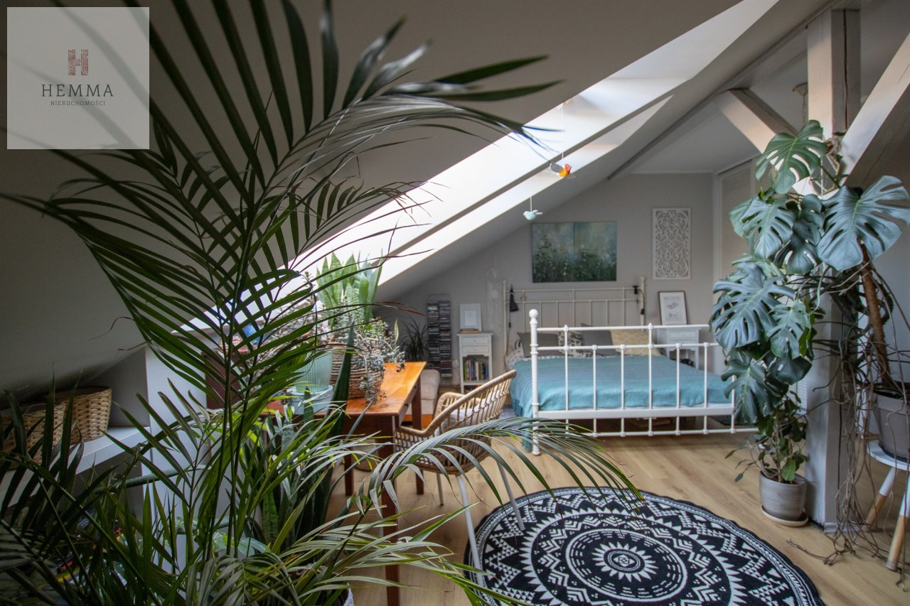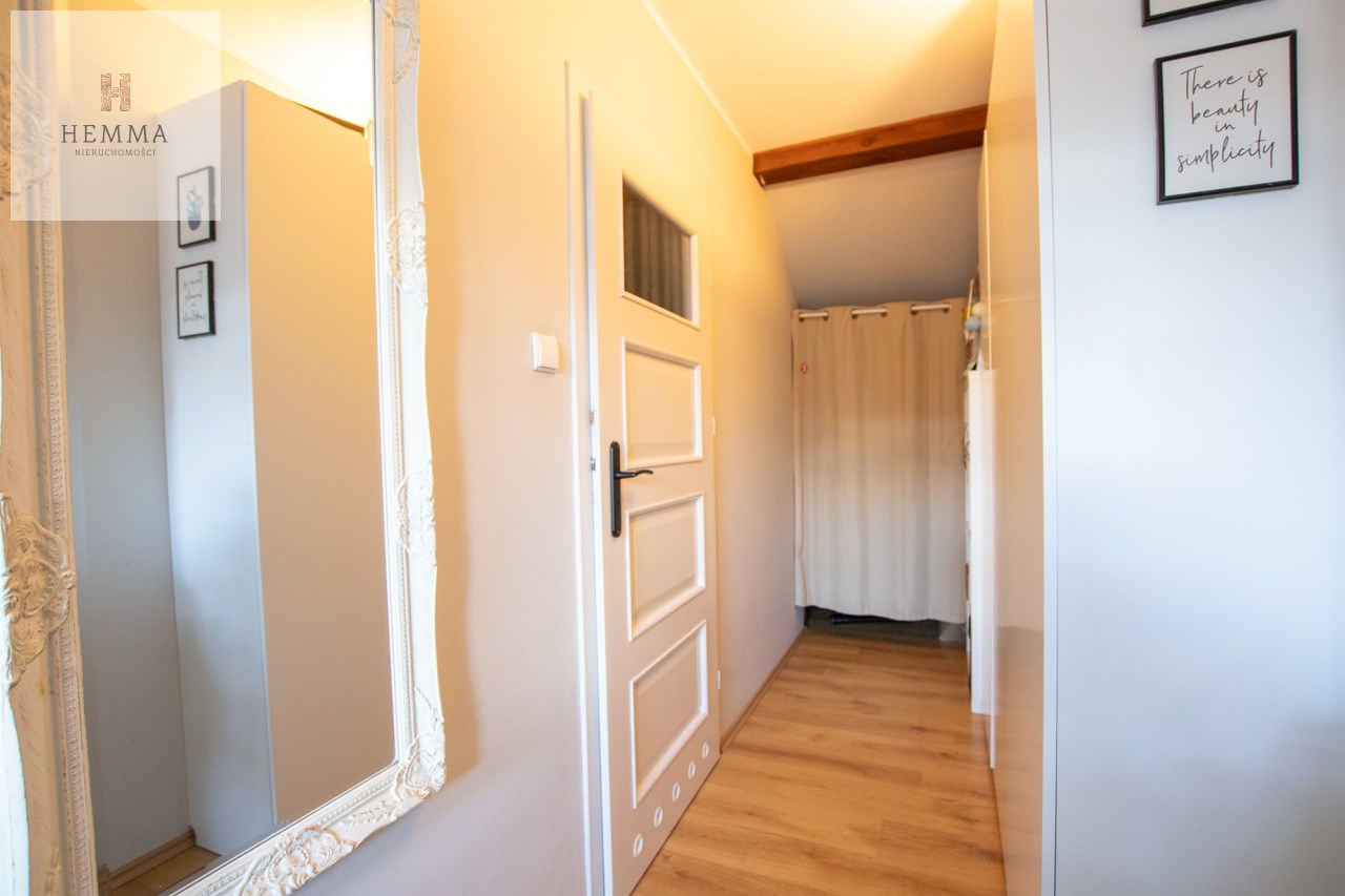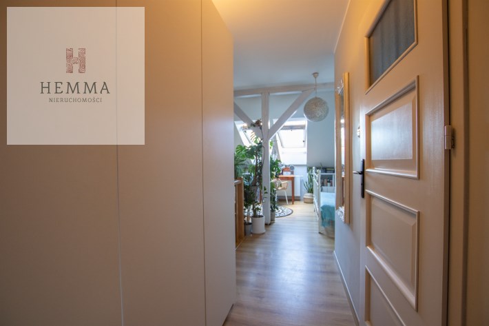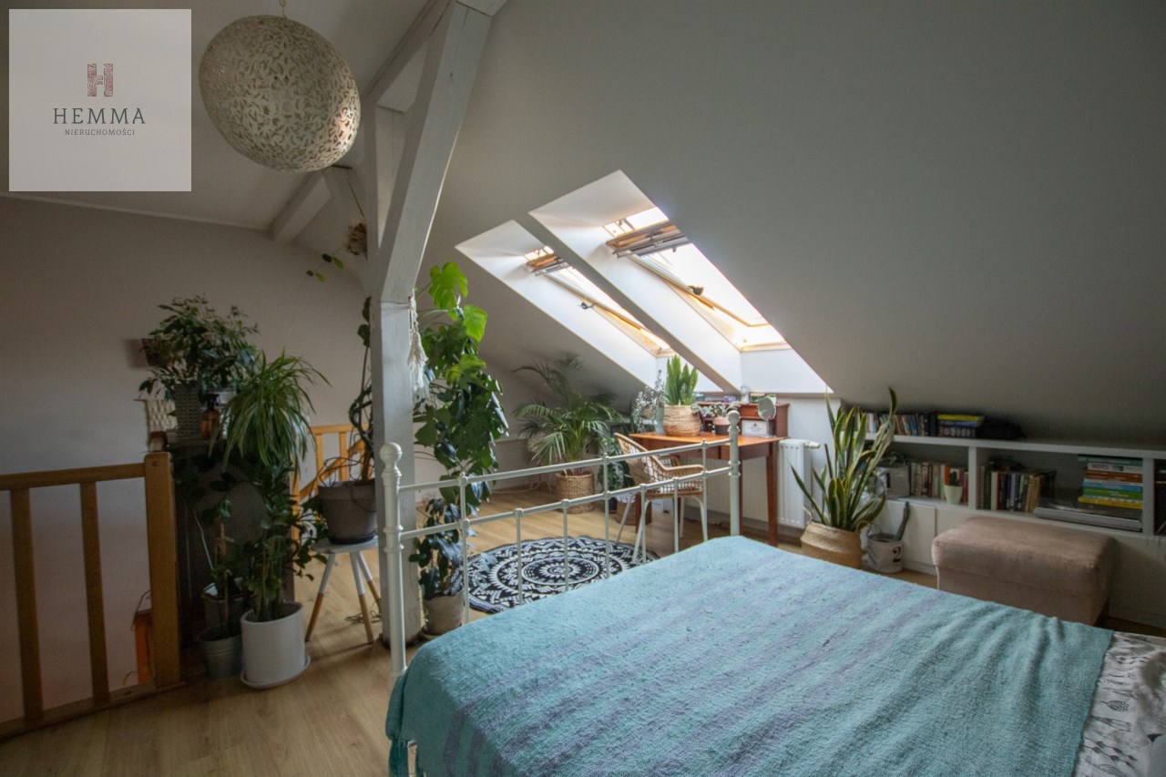 - Na poddaszu znajduje się garderoba, która zapewnia dodatkową, praktyczną przestrzeń do przechowywania.