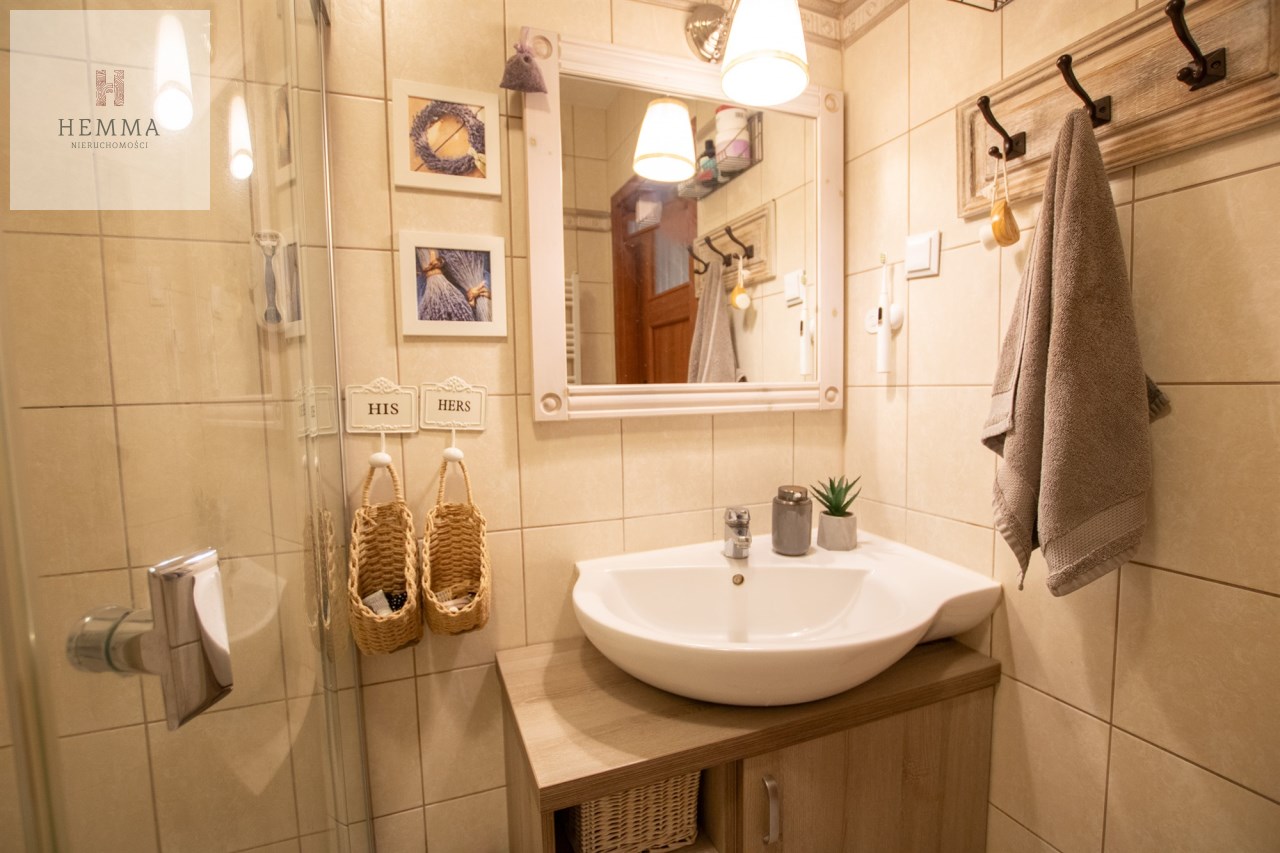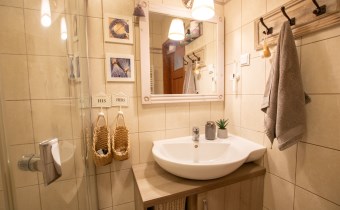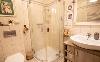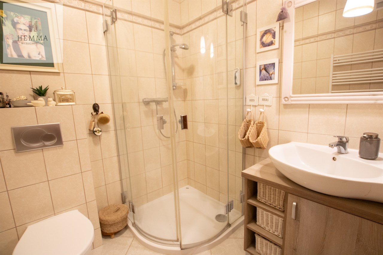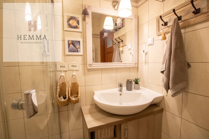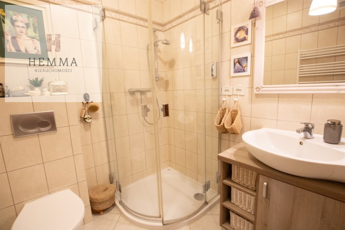 - Łazienka : Kabina prysznicowa, umywalka z miejscem do przechowywania, wc