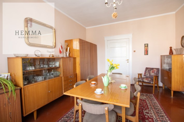 Oryginalny rozkład nieruchomości spowoduje zachwyt każdego gościa który zawita w te progi. Połączenie dwóch pokoi za pomocą ogromnych, rozsuwanych drzwi, daje możliwość stworzenia przestrzeni której nie znajdzie się we współczesnej architekturze wnętrz. Kolejnym niepowtarzalnym elementem jest obszerna łazienka, którą nazwać pokojem kąpielowym nie będzie nad wyraz a ogromne wręcz okno, daje wrażenie iż przenieśliśmy się czasie. Mieszkanie jest podzielone na cztery pokoje w których można stworzyć niepowtarzalną a zarazem funkcjonalną przestrzeń która nie kończy się na 105 metrach, gdyż dla konesera przestrzeni, istnieje możliwość wygospodarowania kolejnych pomieszczeń ze strychu znajdującego się nad mieszkaniem. Nieruchomość znajduje się na pierwszym piętrze. Klatka schodowa zabezpieczona domofonem, jest czysta i zadbana.
